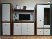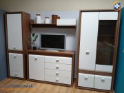 System Dallas charakteryzują zaoblone ku górze fronty MDF, które swoim kształtem podkreślają unikalność brył. Ciekawym elementem jest także ryflowana wstawka, która znakomicie podkreśla połączenie dwóch zróżnicowanych dekorów: subtelnej bieli i ciepłego naturalnego orzecha - całość nadaje wnętrzu elegancji i świeżości