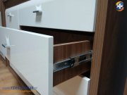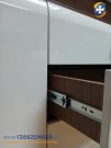 System Dallas charakteryzują zaoblone ku górze fronty MDF, które swoim kształtem podkreślają unikalność brył. Ciekawym elementem jest także ryflowana wstawka, która znakomicie podkreśla połączenie dwóch zróżnicowanych dekorów: subtelnej bieli i ciepłego naturalnego orzecha - całość nadaje wnętrzu elegancji i świeżości