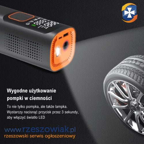 Bez problemu napompujesz koła w swoim pojeździe, nawet w nocą lub przy słabym oświetleniu. Urządzenie wyposażone jest w mocną latarkę, dzięki czemu używanie go jest jeszcze bardziej wygodne.