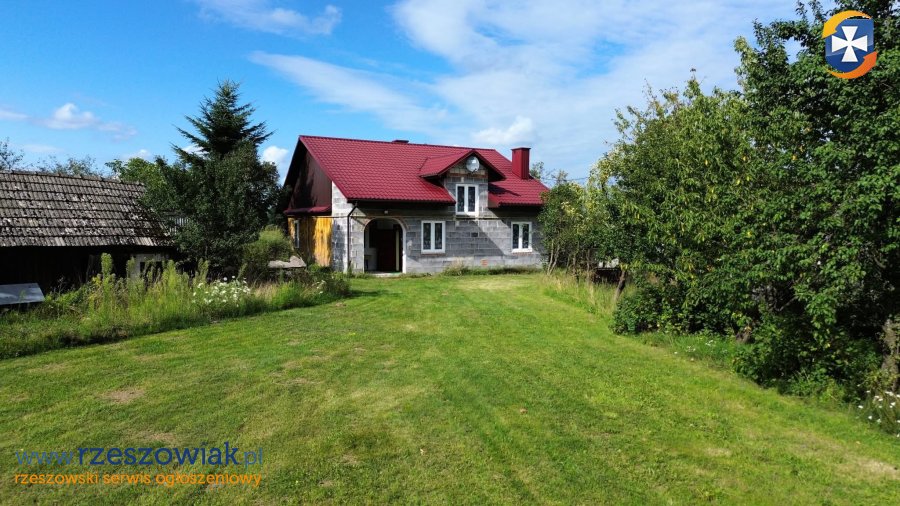 Na sprzedaż dom o powierzchni zabudowy ok. 90 m² położony na dużej działce 43,87 ara z bezpośrednim zjazdem z drogi asfaltowej.