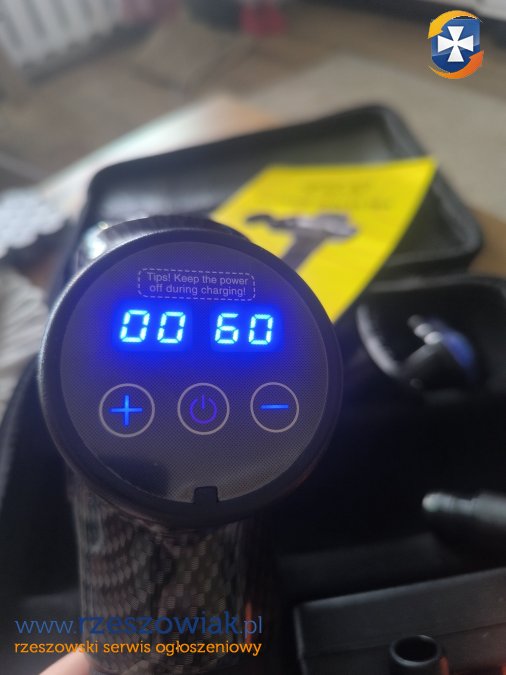 W zestawie: pistolet, 9 wymiennych końcówek, ładowarka, walizka oraz instrukcja obsługi