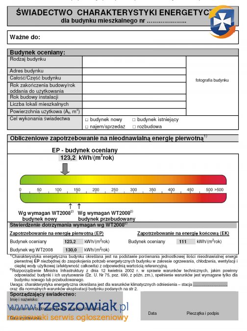 Zajmuję się wykonywaniem ŚWIADECTW CHARAKTERYSTYKI ENERGETYCZNEJ budynków na terenie Rzeszowa i województwa Podkarpackiego.