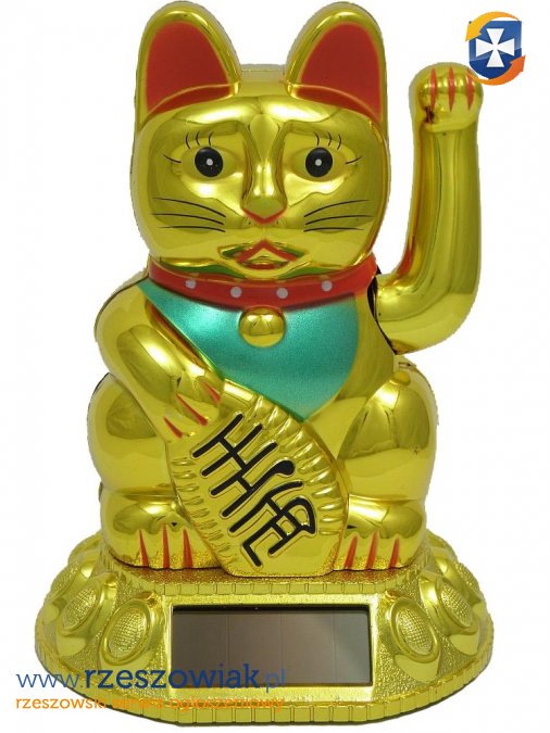 Maneki-neko złoty z baterią solarną. Wysokość figurki 11 cm.