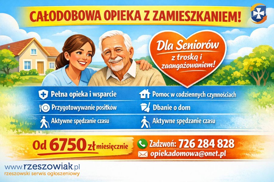 Zapewniamy całodobową opiekę domową z zamieszkaniem â opiekun mieszka razem z Podopiecznym i każdego dnia dba o jego wygodę, bezpieczeństwo oraz aktywność.