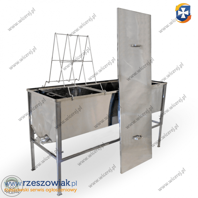 Posiadam w sprzedaży nierdzewny dwustanowiskowy stół 1,5m do odsklepiania ramek typu Dadant ( w zestawie Perforowany wyciągany nierdzewny kosz, 1 nakładka dwustronna nierdzewna na stół oraz POKRYWA ze stali nierdzewnej). Stół, kosz, nakładka oraz pokrywa wykonane ze stali nierdzewnej kwasoodpornej. Stół jest przystosowany do wieszania ramek typu Dadant/Langstroth/Apipol a więc do wszystkich ramek o szerokości 43,5cm.