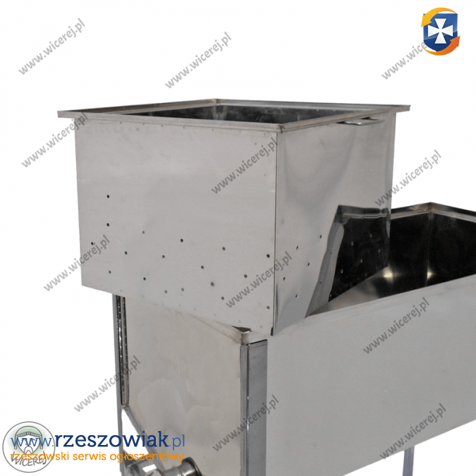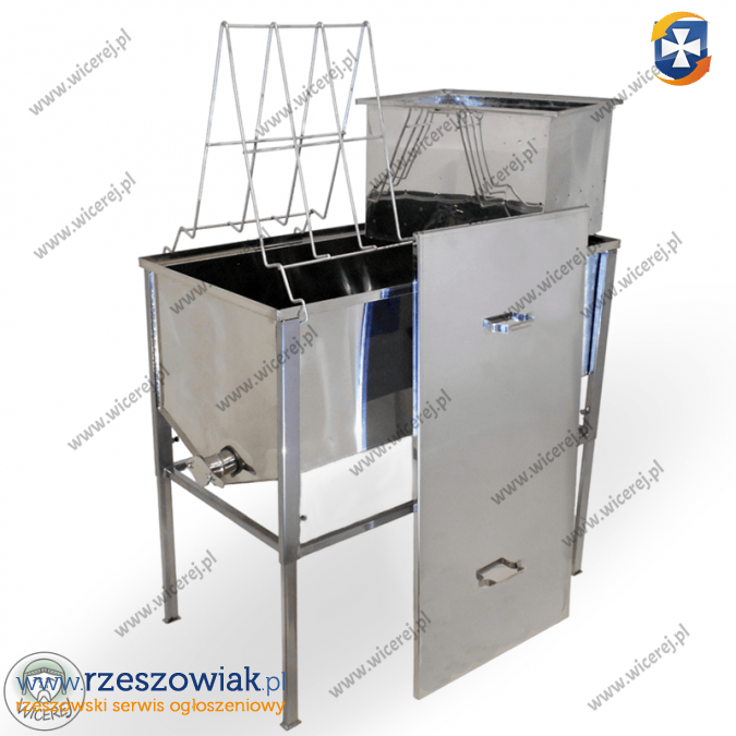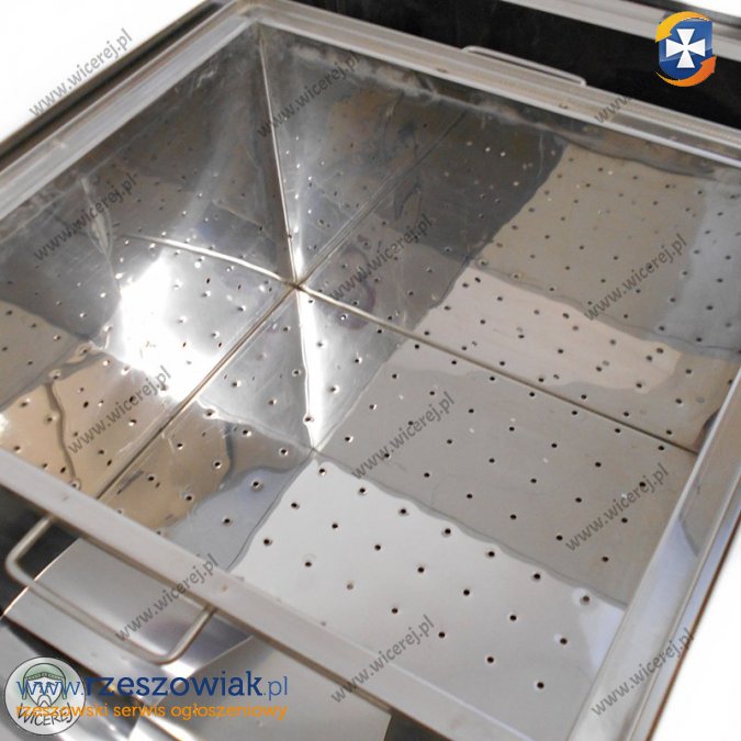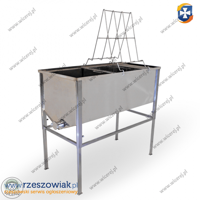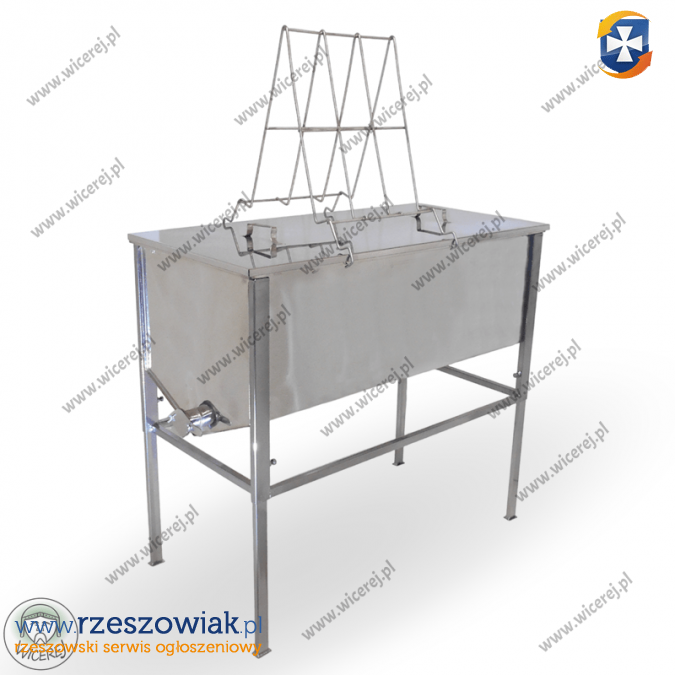 Posiadam w sprzedaży nierdzewny dwustanowiskowy stół 1m do odsklepiania ramek typu Dadant ( w zestawie Perforowany wyciągany nierdzewny kosz, 1 nakładka dwustronna nierdzewna na stół oraz pokrywa nierdzewna). Stół, kosz, nakładka oraz pokrywa wykonane ze stali nierdzewnej. Stół jest przystosowany do wieszania ramek typu Dadant/Langstroth/Apipol a więc do wszystkich ramek o szerokości 43,5cm.