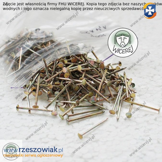 Posiadamy w ofercie gwoździe do zbijania ramek grubość 1,4mm x 25mm długości. Opakowanie 100g. Wykonane ze stali ocynkowanej, stal ocynkowana zapewnia trwałość i stabilność konstrukcji ramek, dodatkowo warstwa ocynku chroni gwoździe przed korozją rdzą.