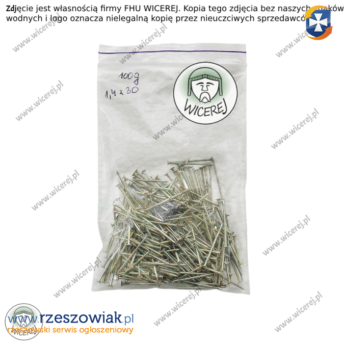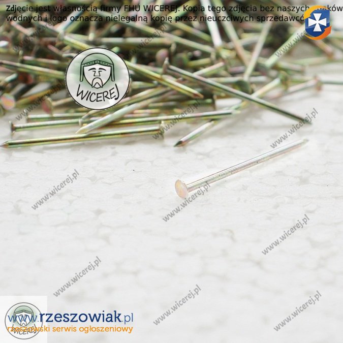Posiadamy w ofercie gwoździe do zbijania ramek grubość 1,4mm x 30mm długości. Opakowanie 100g. Wykonane ze stali ocynkowanej, stal ocynkowana zapewnia trwałość i stabilność konstrukcji ramek, dodatkowo warstwa ocynkui chroni gwoździe przed korozją rdzą.
