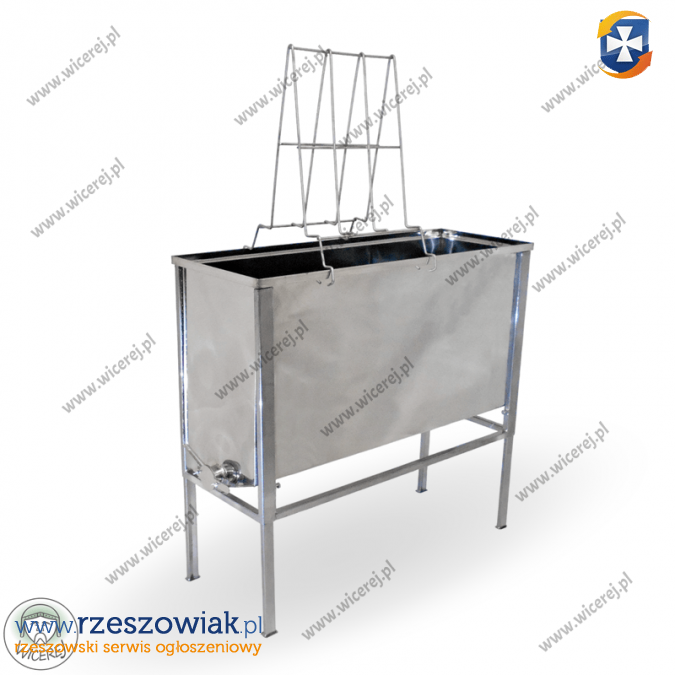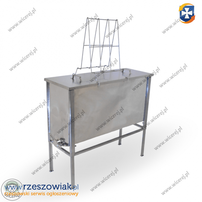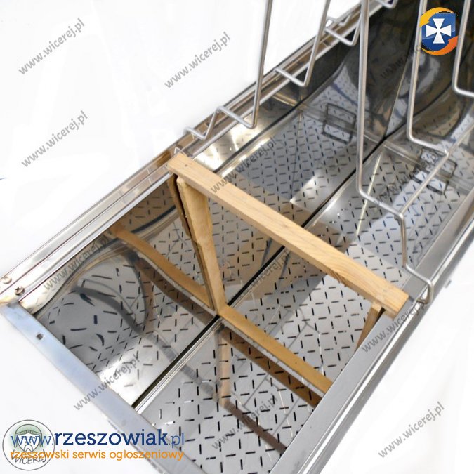 Posiadam w sprzedaży nierdzewny dwustanowiskowy stół 1,2m do odsklepiania ramek typu Warszawska Zwykła i Warszawska Poszerzana ( w zestawie Pokrywa, Perforowane Sito i 1 nakładka dwustronna na stół). Stół 1m do odsklepiania ramek wyposażony w perforowane sito. Stół oraz sito wykonane ze stali nierdzewnej kwasoodpornej AISI 304. Stół jest przystosowany do wieszania ramek typu Warszawskie Zwykłe i Warszawskie Poszerzane.