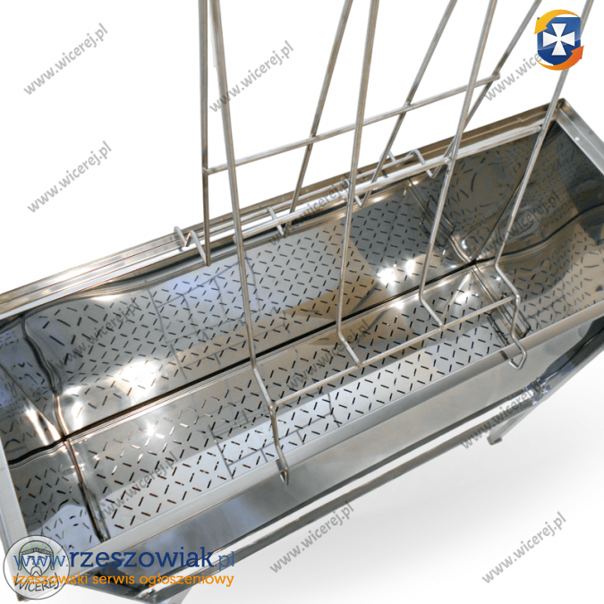 ⢠1 perforowane wyciągane sito - nierdzewne kwasoodporne. Sito umieszczone jest powyżej trapezowego dna na całej długości stołu