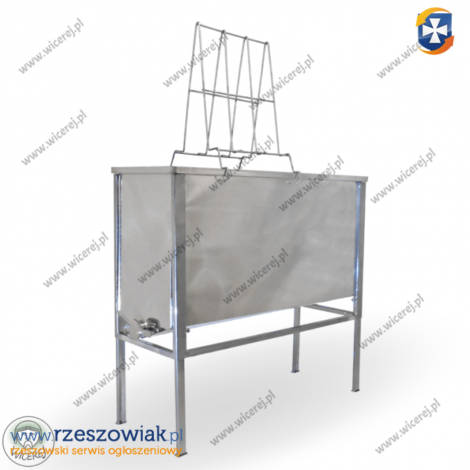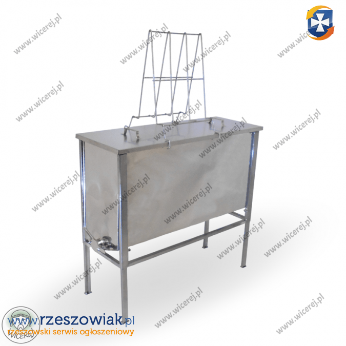 Posiadam w sprzedaży nierdzewny dwustanowiskowy stół 1m do odsklepiania ramek typu Warszawska Zwykła i Warszawska Poszerzana ( w zestawie Pokrywa, Perforowane Sito i 1 dwuosobowa nakładka na stół). Stół 1m do odsklepiania ramek wyposażony w perforowane sito. Stół oraz sito wykonane ze stali nierdzewnej kwasoodpornej AISI 304. Stół jest przystosowany do wieszania ramek typu Warszawskie Zwykłe i Warszawskie Poszerzane.