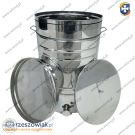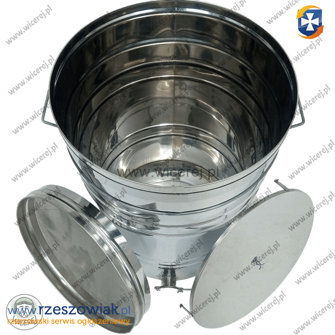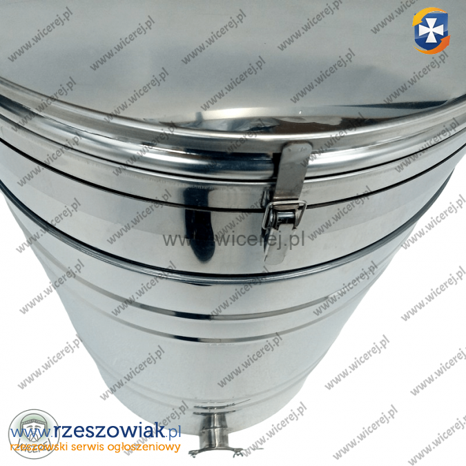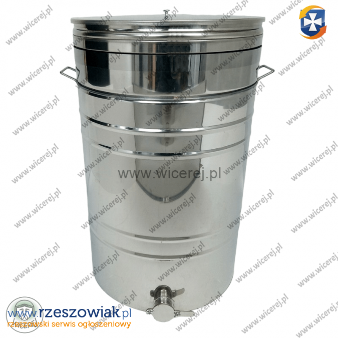 Odstojnik do miodu ze stali nierdzewnej AISI 304 (kwasoodporna) o pojemności 150L. Posiada zawór klapkowy nierdzewny wspawany na wysokości dna, jednoczęściowe sito nierdzewne, pokrywę nierdzewną, oraz uchwyty do przenoszenia. Dodatkowo wyposażony jest w zatrzaski pokrywy.