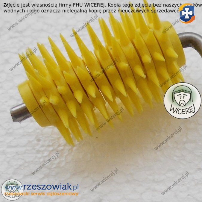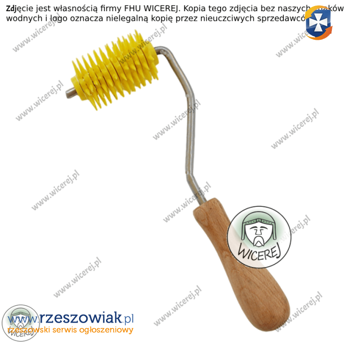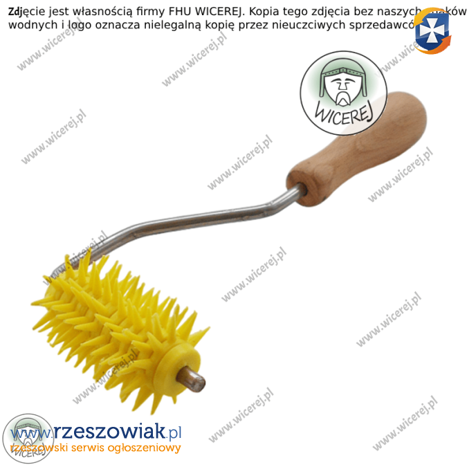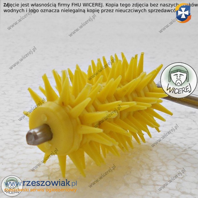 Posiadam w sprzedaży rozluźniacz wałkowy odsklepiacz typu jeż. Rozluźniacz wałkowy, kołowy, odsklepiacz typu âjeżâ do miodu np. wrzosowego. Odsklepiacz posiada wygodną rączkę z twardego tworzywa sztucznego oraz ostre plastikowe igły. Wałek połączony jest z rączką prętem ze stali nierdzewnej.