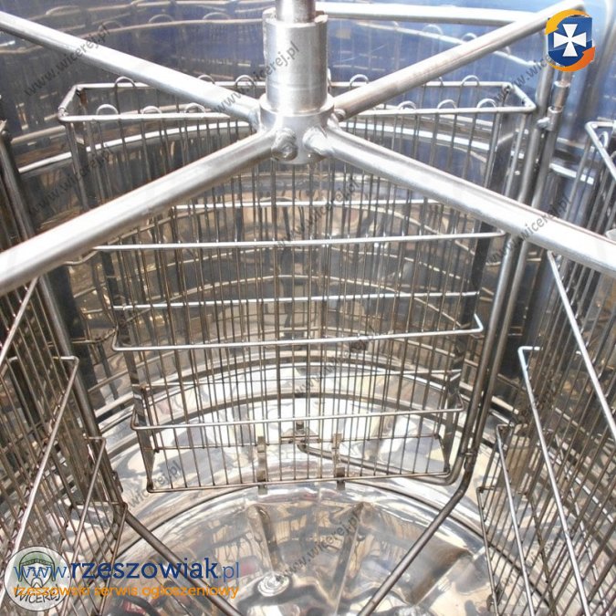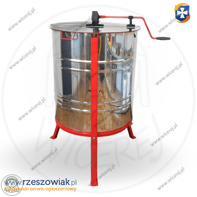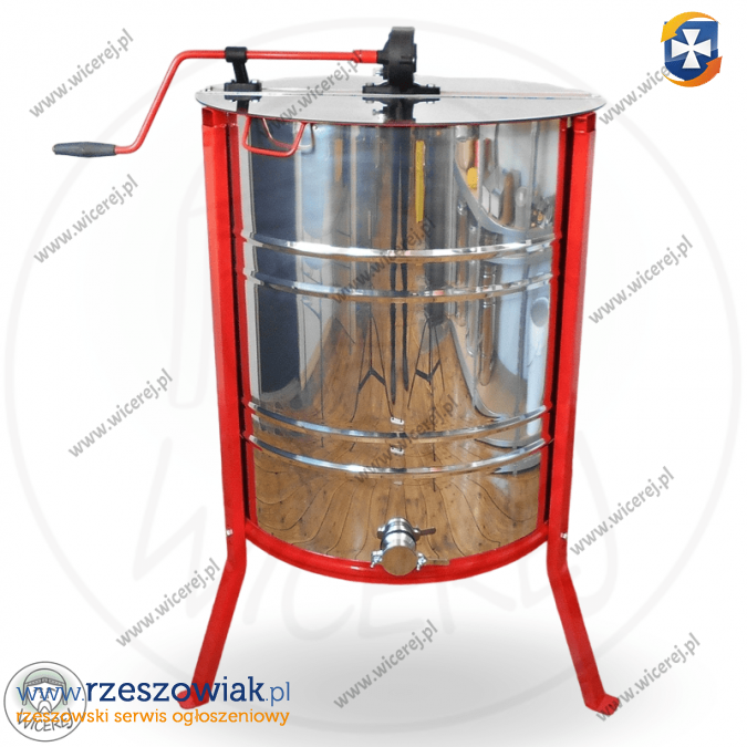 Posiadam w sprzedaży nową miodarkę ręczną 4 kasetową Nierdzewną uniwersalną. Miodarka 4-ramkowa, z kasetami uniwersalnymi odwracalnymi tzw. Kasetową (nie trzeba przekładać ramek tylko odwraca się kasety). Cała Miodarka wykonana ze stali nierdzewnej kwasoodpornej, posiada napęd tradycyjny na korbę (koła zębate napędu metalowe) . Zawór klapkowy nierdzewny wspawany na wysokości dna. Miodarka jest uniwersalna (rozmiar max.: Dadant gniazdowa) i przeznaczona do każdego typu ramek: Dadant, Wielkopolska, Ostrowskiej, Langstroth, Warszawska Zwykła, Warszawska Poszerzana . Dno miodarki ma kształt stożka co umożliwia szybsze spływanie miodu. Miodarka jest kompletna posiada pokrywy oraz nogi.