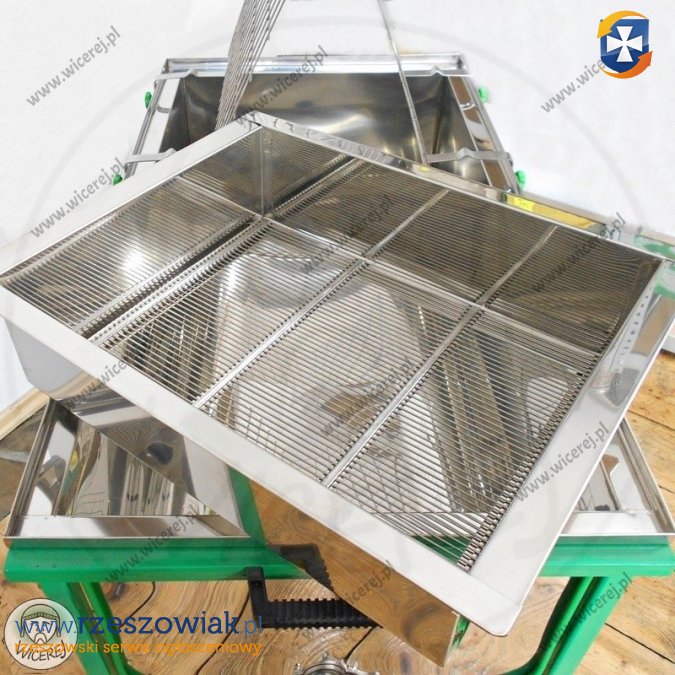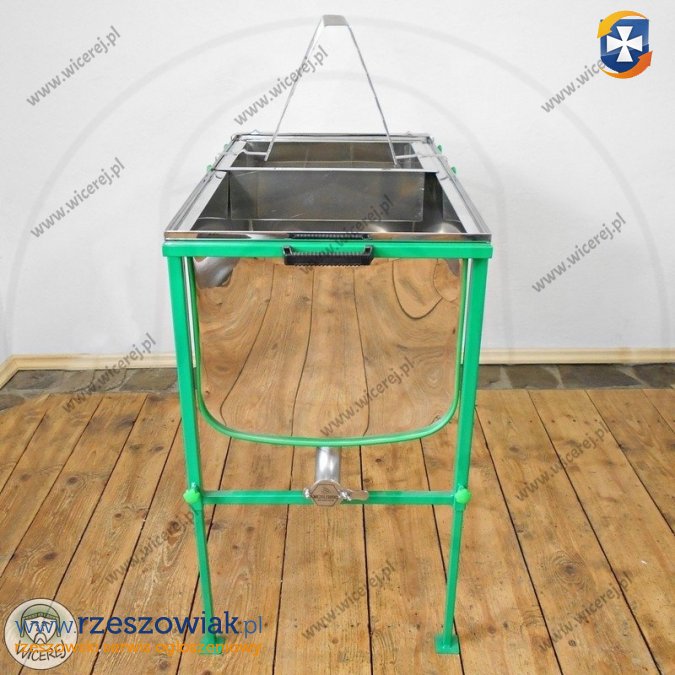 Posiadamy w ofercie dwustanowiskowy stół do odsklepiania ramek 1m z koszem na ramki Dadant / Langstroth/ Wielkopolskie dzięki specjalnej nakładce zwężającej.