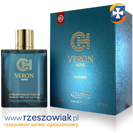Zapraszam do zakupu wspaniałej męskiej wody perfumowanej z firmy CHATLER, VERON HERO FOR MEN 100 ml, która swym uroczym zapachem odzwierciedla wodę od VERSACE - VERSACE EROS POUR HOMME w cenie 30 zł.