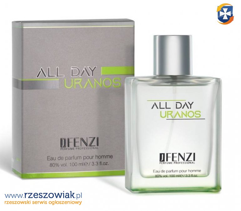 Zapraszam do zakupu wspaniałej męskiej wody perfumowanej z firmy J. FENZI, ALL DAY URANOS POUR HOMME 100 ml, która swym uroczym zapachem odzwierciedla wodę od HERMES - HERMES H24 w cenie 35 zł.