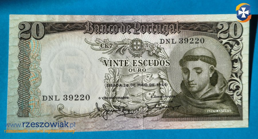 Zapraszam do zakupu wyjątkowego banknotu, który przeniesie Cię w czasy historycznych zmian w Portugalii! Przedmiotem sprzedaży jest oryginalny banknot 20 (dwadzieścia) escudos z 1964 roku, wyemitowany przez Banco de Portugal.