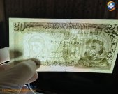 Awers: Przedstawia wizerunek świętego Antoniego (Santo António), patrona Lizbony, co nadaje mu głęboki wymiar kulturowy i religijny. (Warto zauważyć, że na banknocie znajduje się wizerunek świętego Antoniego, a nie świętego Franciszka, jak się czasami błędnie uważa). Widoczny jest również numer seryjny DNL 39220.