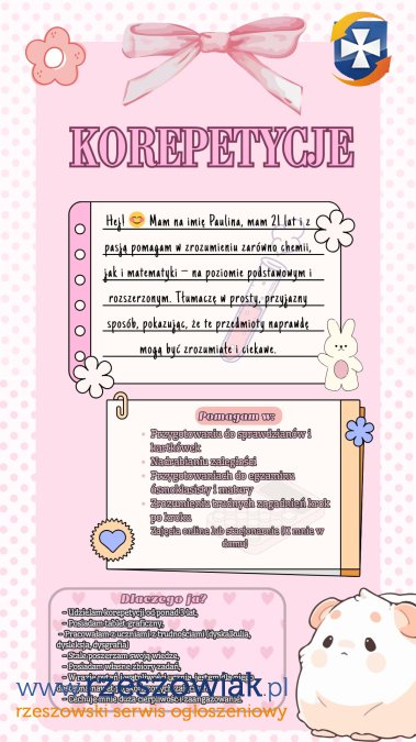 Korepetycji udzielam stacjonarnie na terenie Rzeszowa u siebie w mieszkaniu ( osiedle Zawiszy Czarnego) oraz online przez platforme discord.