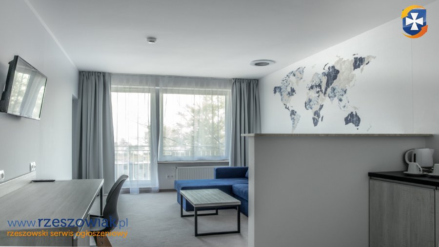 Apartament*401 ma 33 m2. Usytuowany jest na czwartym piętrze, siedmiopiętrowego kompleksu z windą, widokowym lobby, basenem, saunami, strefą cardio, salą zabaw dla dzieci, restauracją, kawiarnią, drink barem, recepcją, oraz miejscem parkingowym.