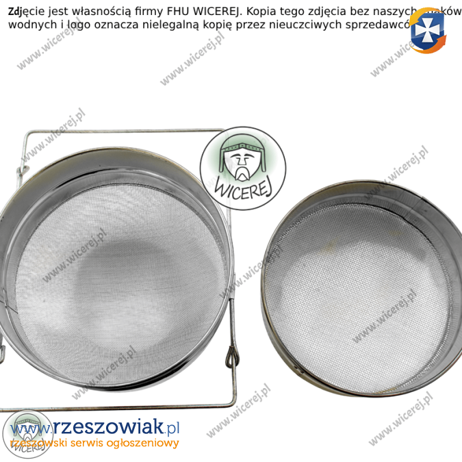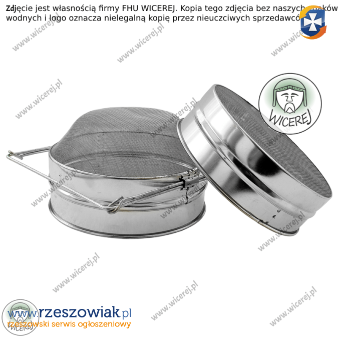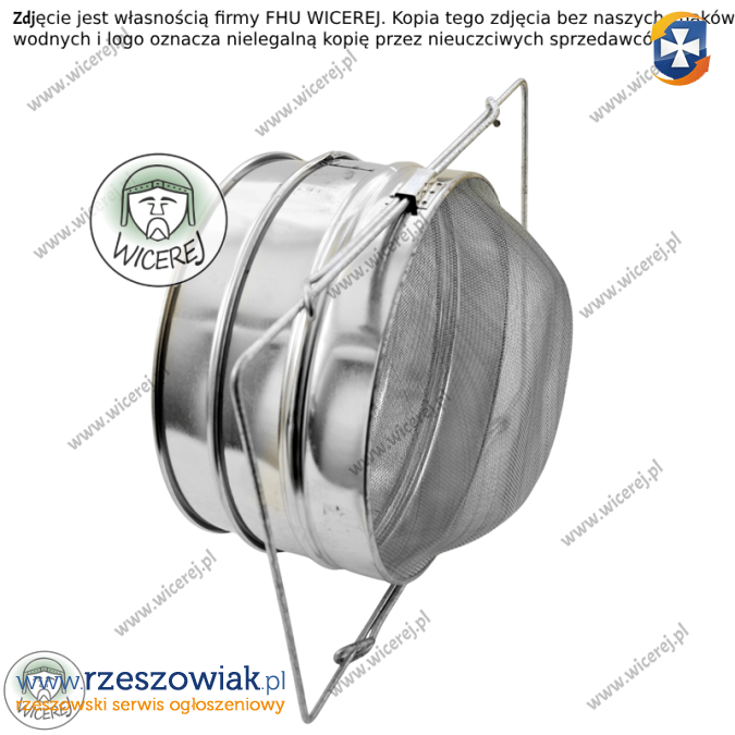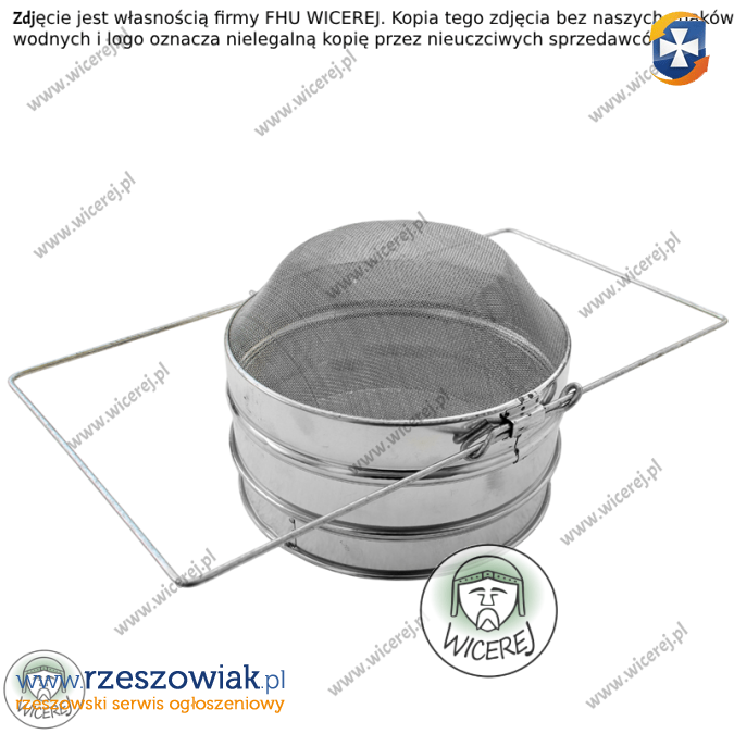Posiadamy w sprzedaży nowe sito cedzidło do miodu okrągłe o średnicy 20cm, wypukłe podwójne. Wypukłość ułatwia odpływanie miodu Składa się z cedzidła górnego o szerokich, większych oczkach oraz sita dolnego o drobniejszych, gęściej rozłożonych oczkach. Dodatkowo dolny cedzak posiada rozszerzony wspornik.