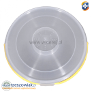 Podkarmiaczkę montuje się do góry dnem, w powałce ula na pierścieniu montażowym. Podkarmiaczka dzięki uniwersalnym wymiarom będzie pasowała do większości uli. Jej wysokość całkowita to około 17,5cm, średnica góry 25cm, średnica dołu 21cm, średnica otworu około 7,5cm, pojemność 5 litrów.