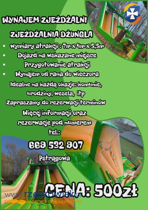 Zapraszamy do wynajmu zjeżdżalni Dżungla.Szczegóły pod numerem telefonu 669532907.