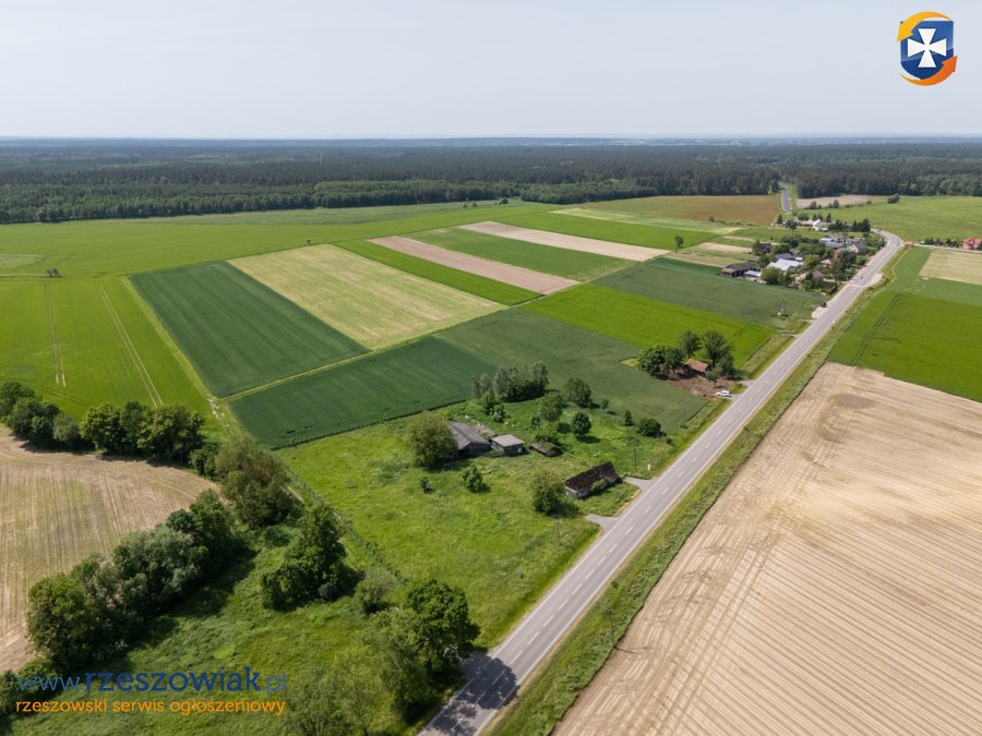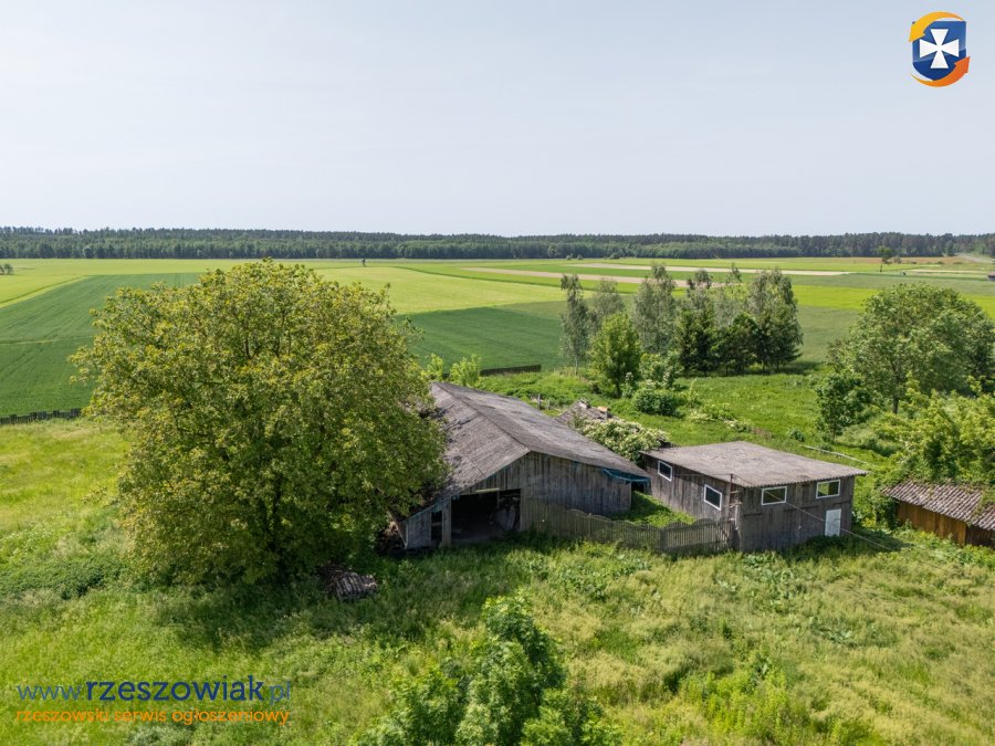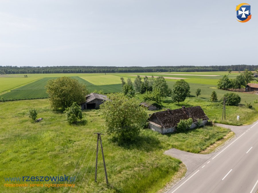 Na działce znajduje się dom drewniany przeznaczony do rozbiórki, oraz stosunkowo nowe bydynki gospodarcze drewniane w świetnym stanie. Działka uzbrojona w dostęp do gazu, prądu, kanalizacji oraz wody. Nieruchomość ogrodzona siatką.