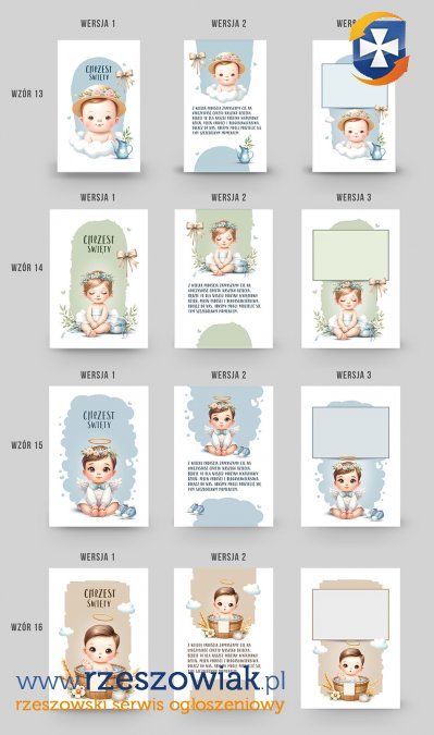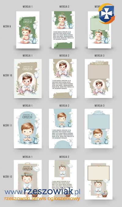 Zaproszenia chrzest święty zestaw 36 plików psd. do druku (12 wzorów każdy w 3 wersjach).