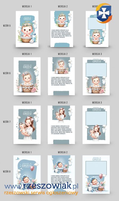 Zaproszenia chrzest święty zestaw 36 plików psd. do druku (12 wzorów każdy w 3 wersjach).