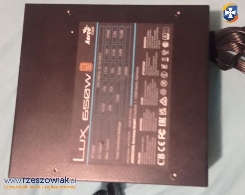 Zasilacz komputerowy AeroCool Lux 650W w używanym stanie. Idealny do pracy z nowoczesnymi komponentami komputerowymi, zapewniający stabilne i pewne zasilanie. Doskonały wybór dla entuzjastów gamingu i profesjonalistów wymagających wysokiej wydajności.