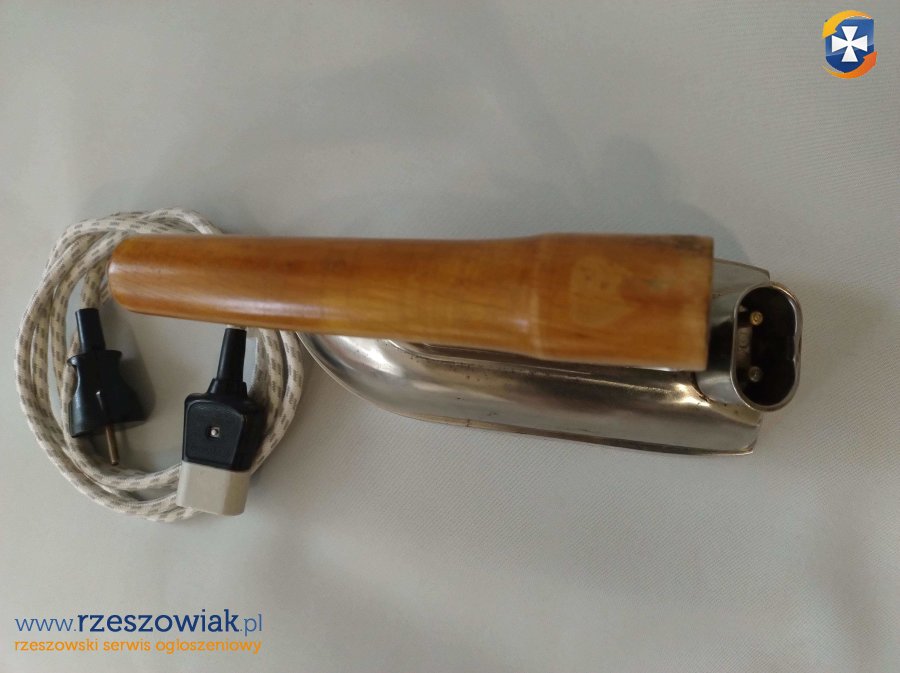 Żelazko krawieckie z okresu PRL (przełom lat 70/80) produkowane przez Termika Cieszyn. Jego stan jest więcej niż dobry i jest w pełni sprawne. Wymieniony został jedynie sam kabel ale końcówki pozostały oryginalne.