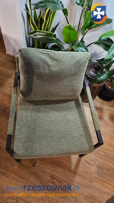 Zestaw dwóch wygodnych foteli w idealnym stanie. Mają one solidną, metalową konstrukcję i miękkie, tapicerowane siedziska. Doskonale sprawdzą się jako meble do salonu lub sypialni, dodając przytulny klimat do wnętrza.