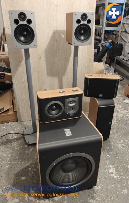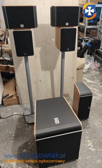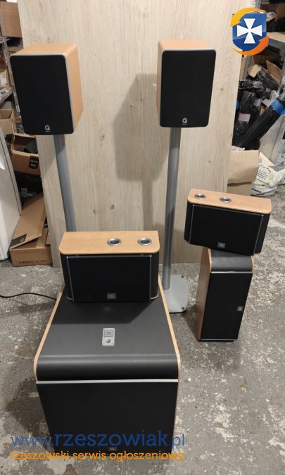Zestaw głośnik do kina domowego. Zestaw rozpakowany, praktycznie nie używany. Stan jak nowy. W skład zestawu wchodzi: model JBL ES250P- 1 sztuka, JBL ES10- 2 sztuki, JBL ES25C- 1 sztuka, QAcustic 1020- 2 sztuki, 2 stojaki na kolumny. Odbiór osobisty w Rzeszowie.