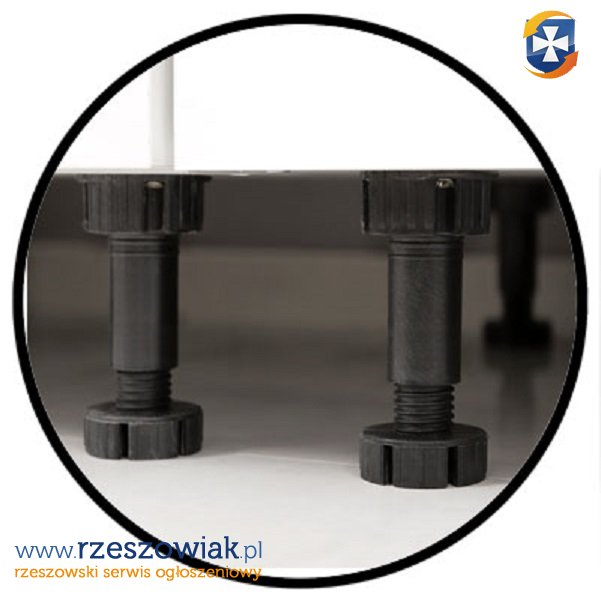 Cokoły w zestawie w kolorze korpusu, cięte po długości szafki.