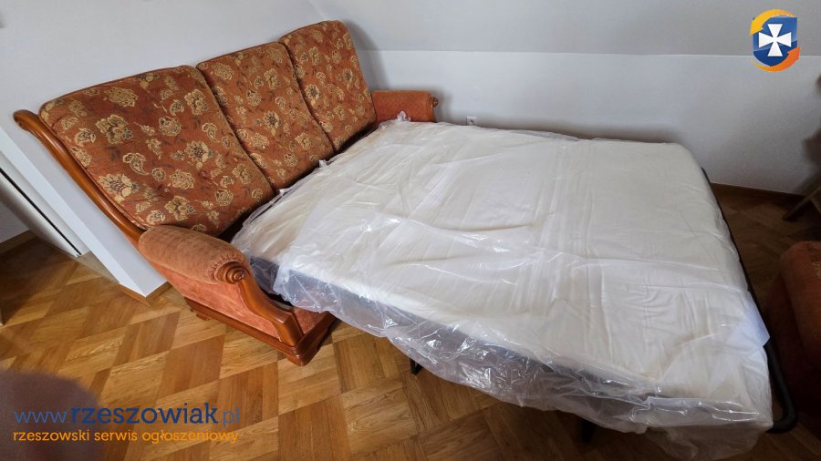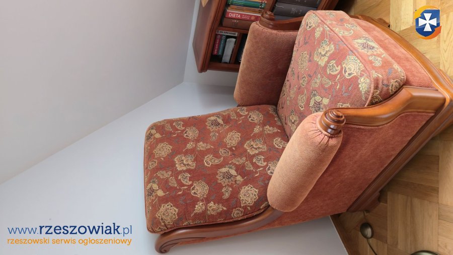 Zestaw mebli wypoczynkowych (model Philip) składający się z trzyosobowej rozkładanej sofy (możliwość spania), dwóch foteli oraz lamp. Meble są używane, ale w doskonałym stanie wizualnym (bez uszkodzeń) i technicznym. Do zestawu wchodzą też lampy (zestaw: wisząca jupiter + kinkiet; oraz trzy kinkiety) - w bardzo dobrym stanie technicznym, działające. Zapraszamy do obejrzenia oferty.