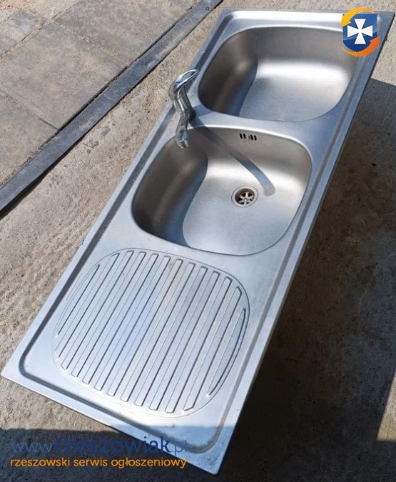 Zlewozmywak w kąplecie, kran syfon i wężyki do podłączenia wody 120 cm x 50 cm w bardzo dobrym stanie
