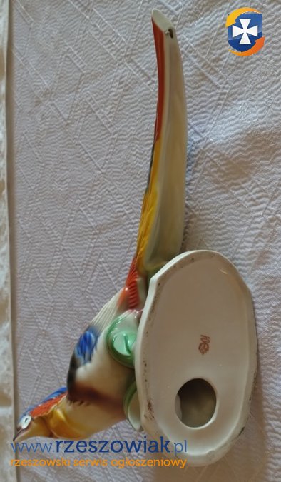 Duża, ręcznie malowana figurka samca bażanta. Wyprodukowana została w latach 50-tych XX wieku w Państwowych Zakładach Porcelitu Stołowego w Tułowicach. Wyraziste detale i wysoka jakość wykonania.