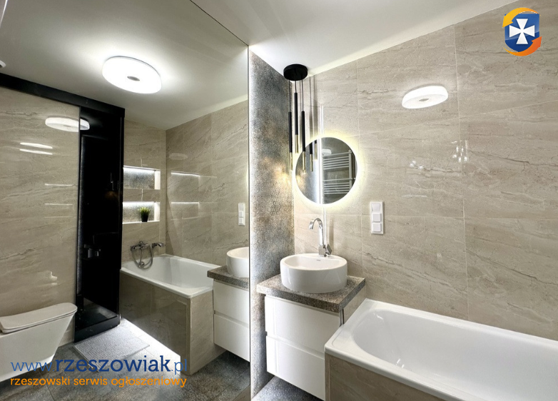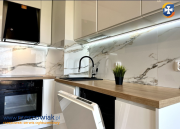 - salon z aneksem kuchennym (na wyposażeniu: piekarnik wraz z płytą indukcyjną, okap, lodówka, zmywarka)